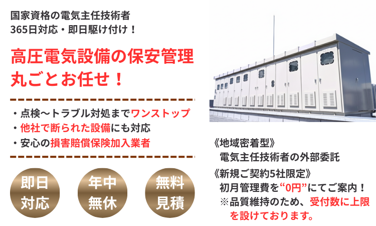兵庫県内で電気主任技術者の外部委託サービス。「電話」または「メールフォーム」で無料概算お見積りします!