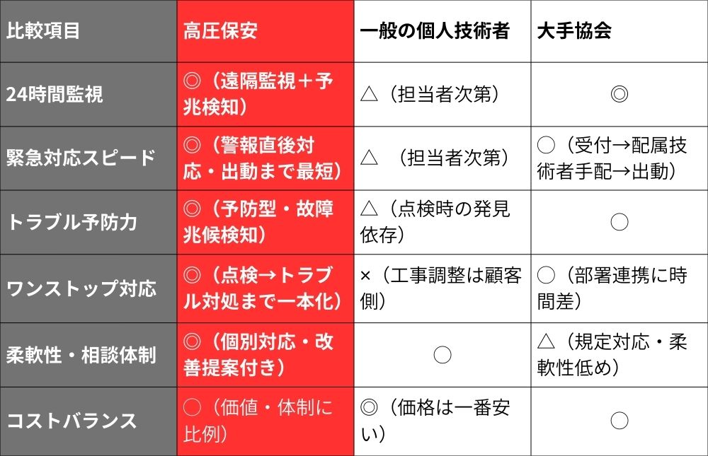 - 24時間監視と技術者ネットワークで異常兆候を即時検知