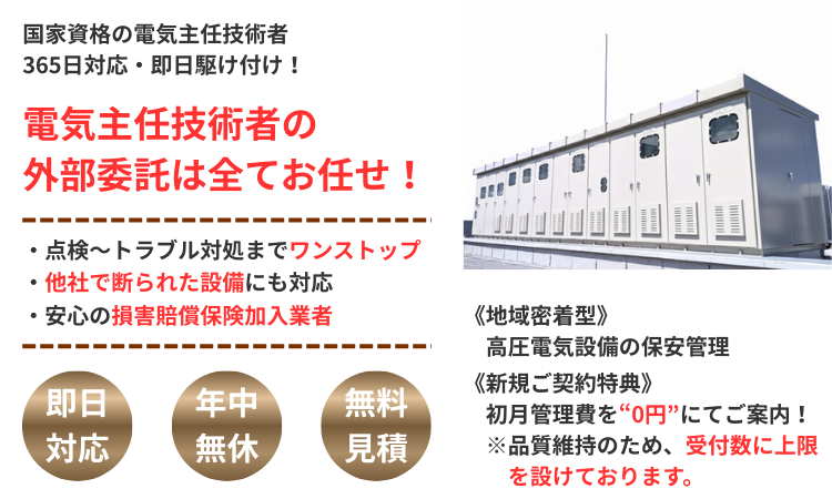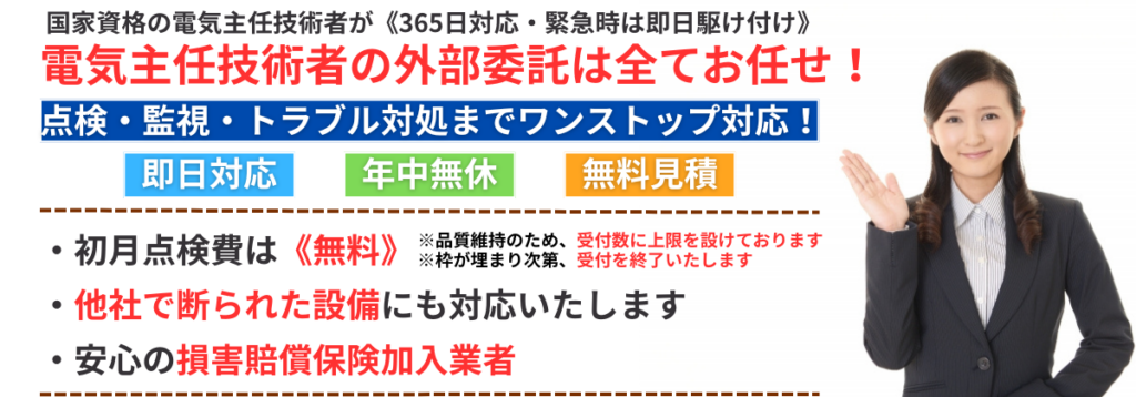 兵庫県内で電気主任技術者の外部委託サービス。「電話」または「メール」で無料概算お見積りします!